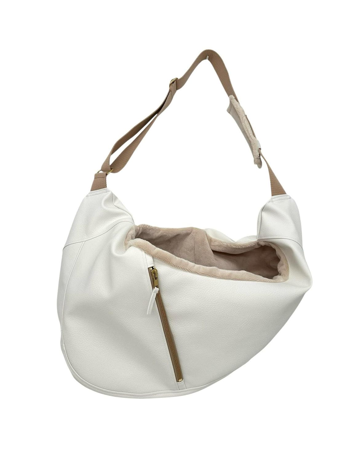 The Luno bag by Fifi's Dog Fashion is a sturdy and comfortable carry bag, ideal for dog owners who want to keep their hands free. With its adjustable shoulder strap and soft padding, you can easily wear the bag cross-body without discomfort on your shoulders. The bag’s rounded shape fits comfortably against your stomach, while the soft cushion inside ensures your dog’s comfort.